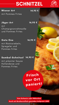 Hier finden Sie alles, was lecker ist und satt macht. Alles für eine schmackhafte Pause vor der Weiterfahrt. Bei uns gibt es Schnitzel, Burger, Frühstück, Suppen und Salate - suchen Sie sich das Beste für sich aus. Guten Appetit wünscht Ihr Team von Gate One.